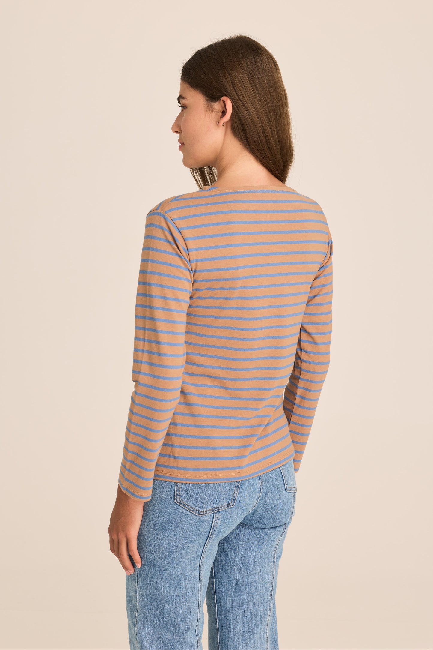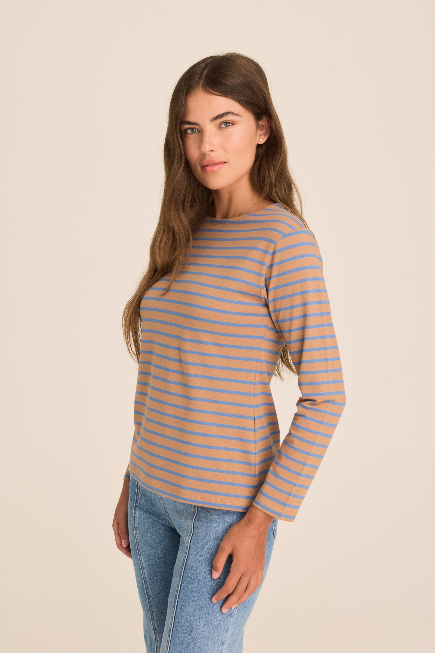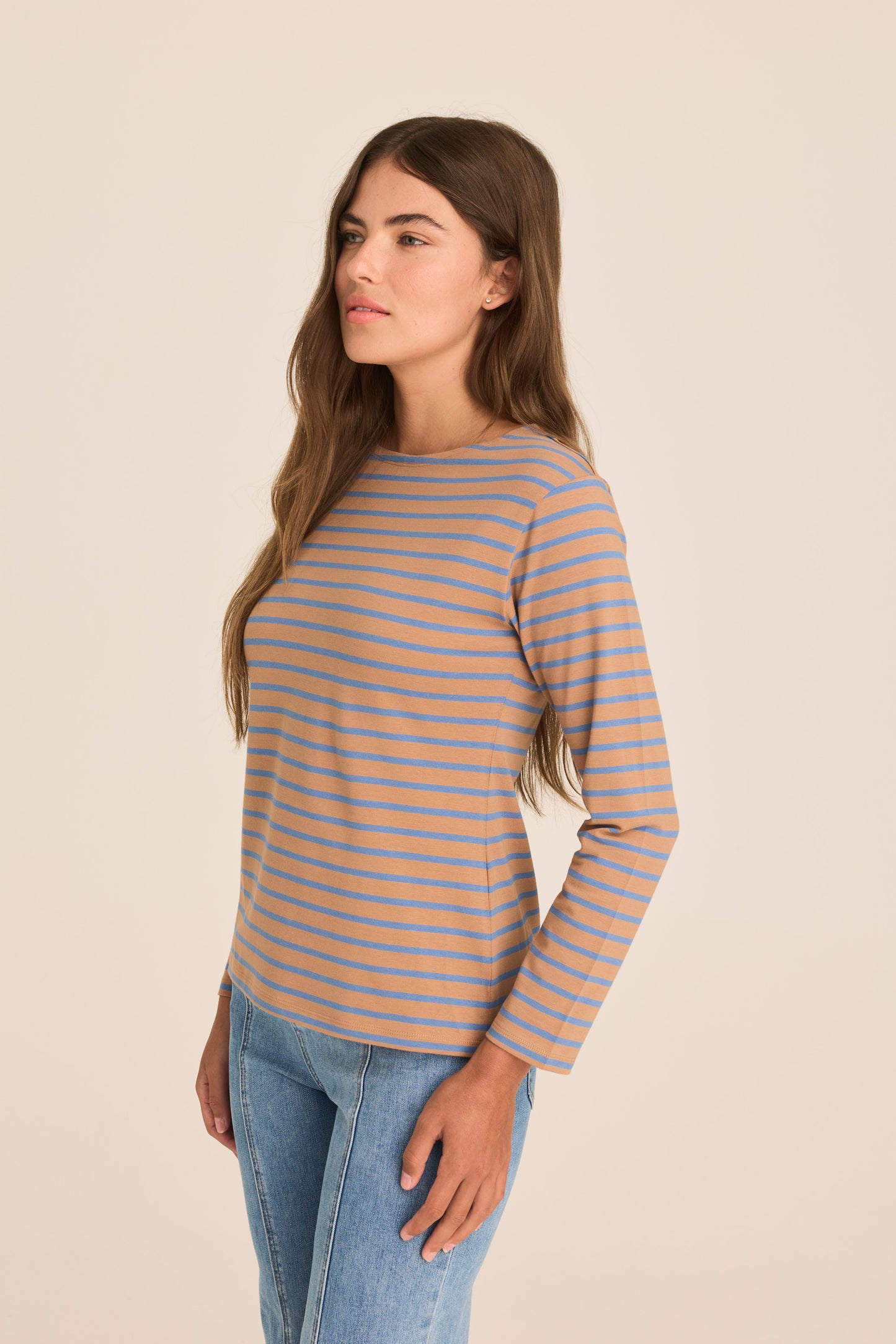 Breton Boat Neck Top- Mocha and blue stripe PREORDER MID FEB