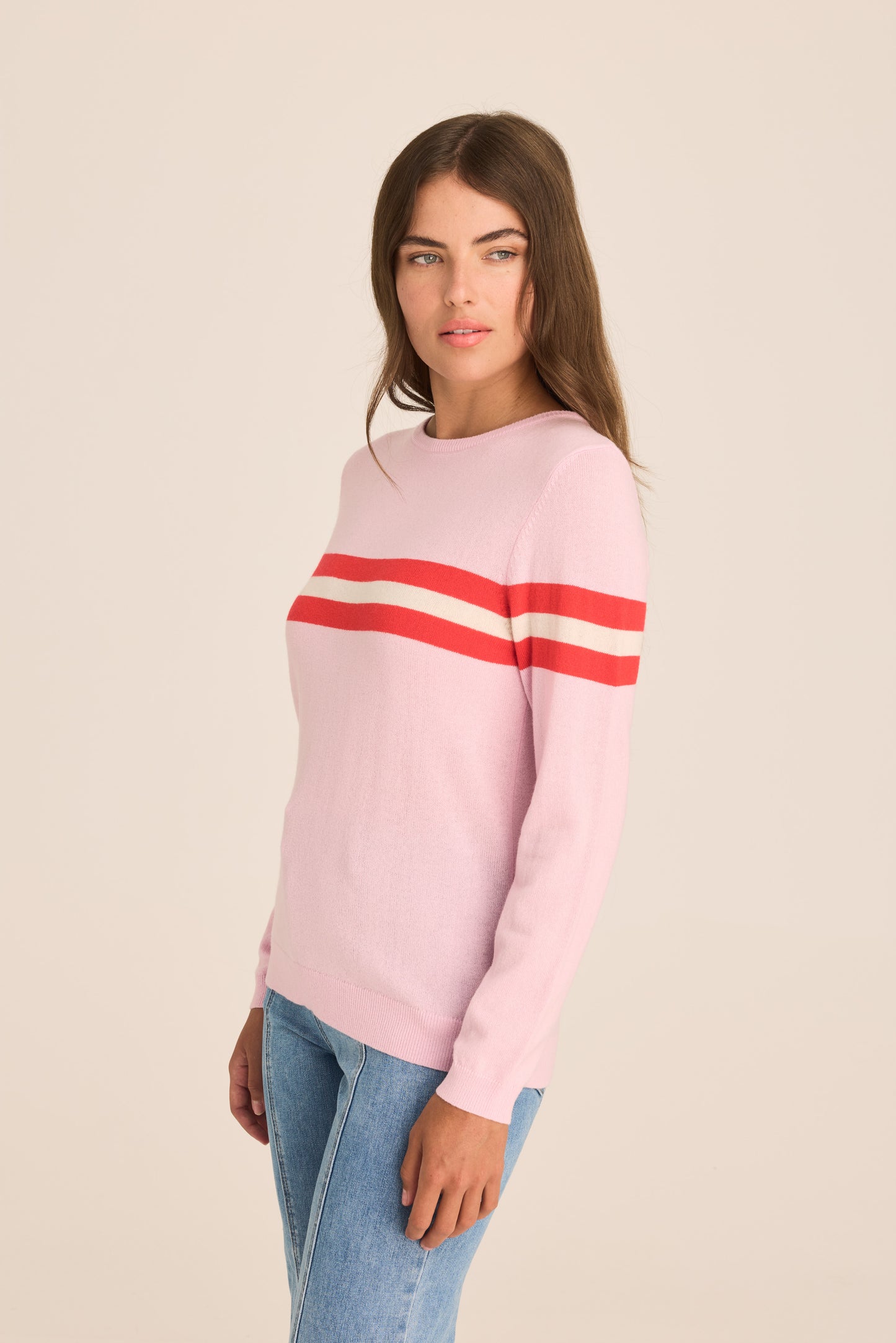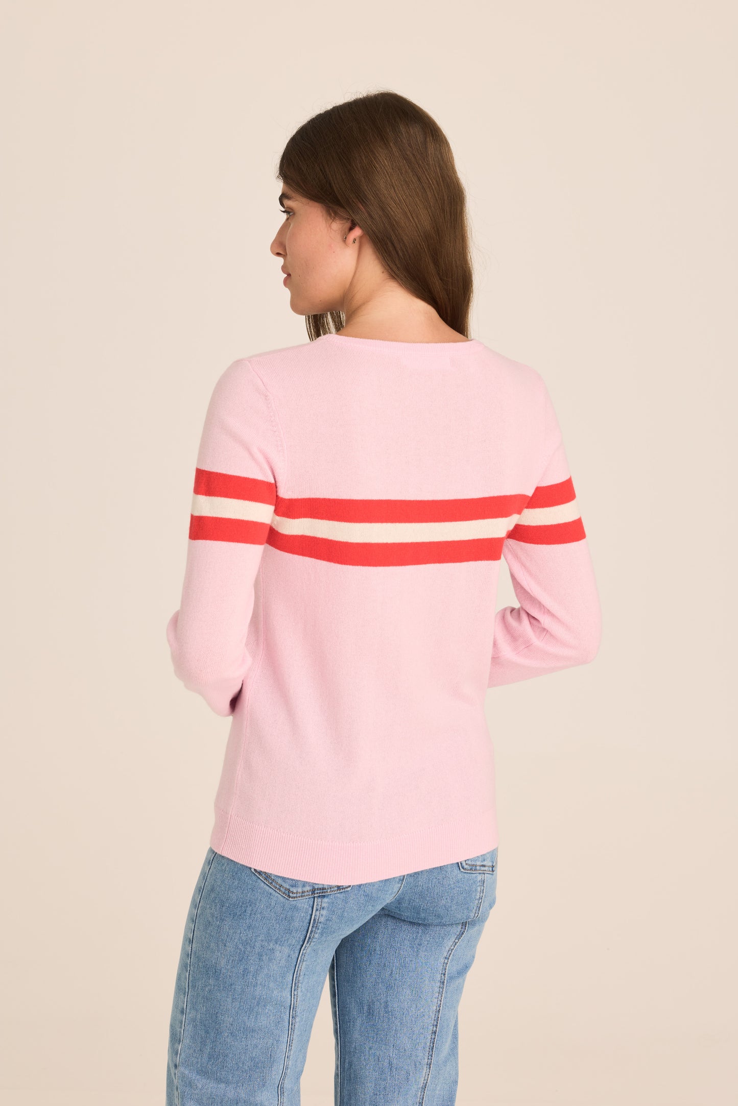 Cashmere & Wool French Racer Crewneck Sweater - PINK
