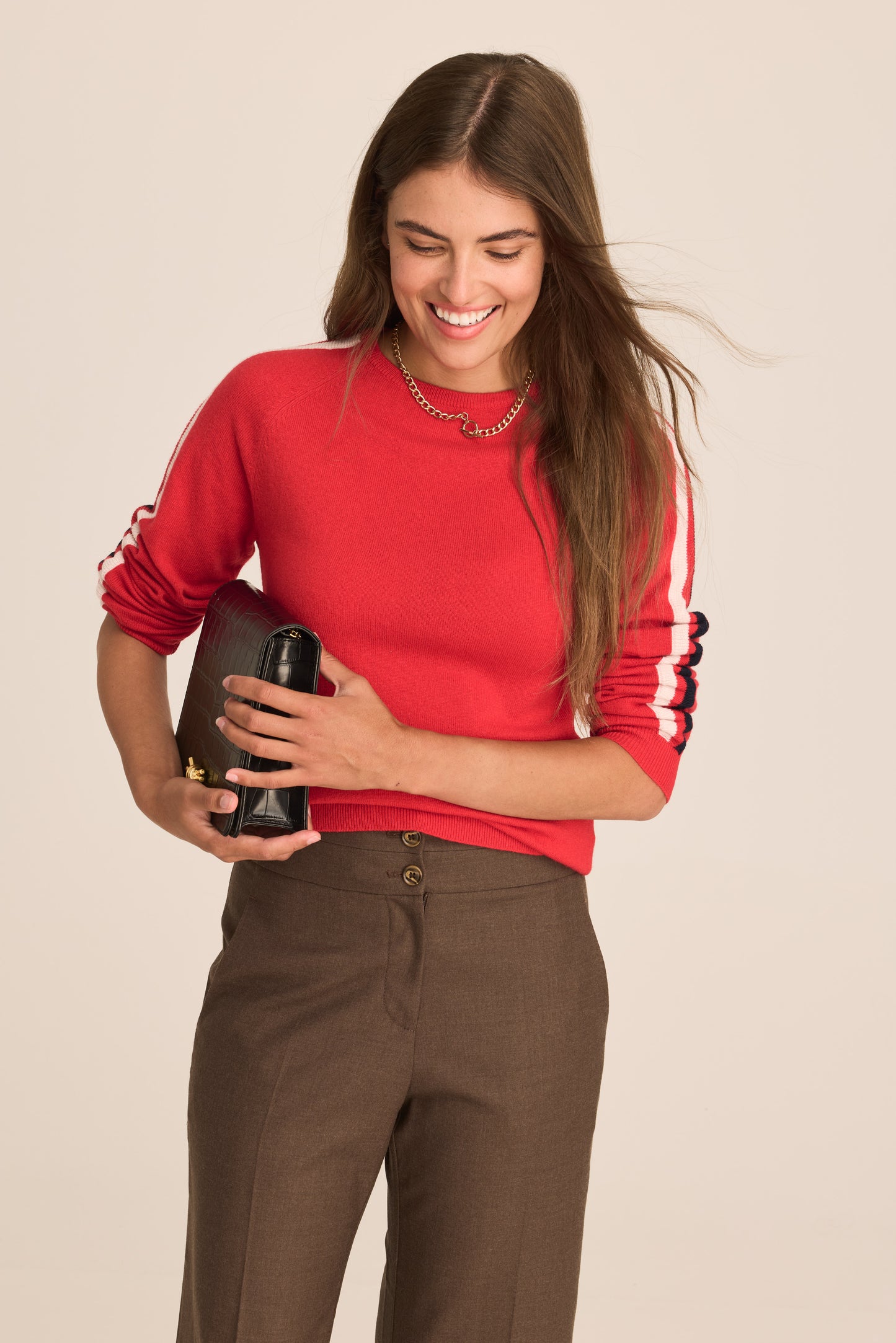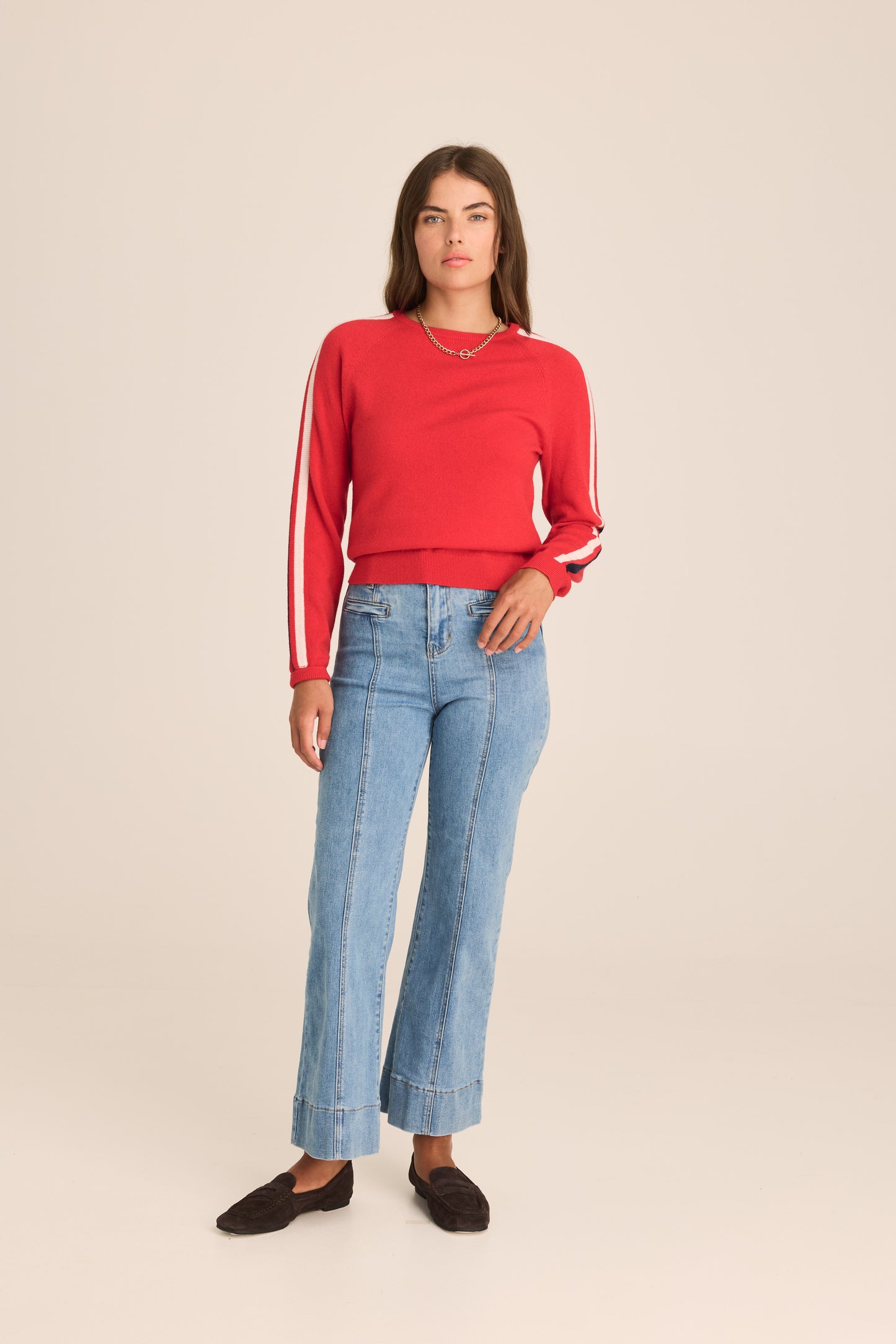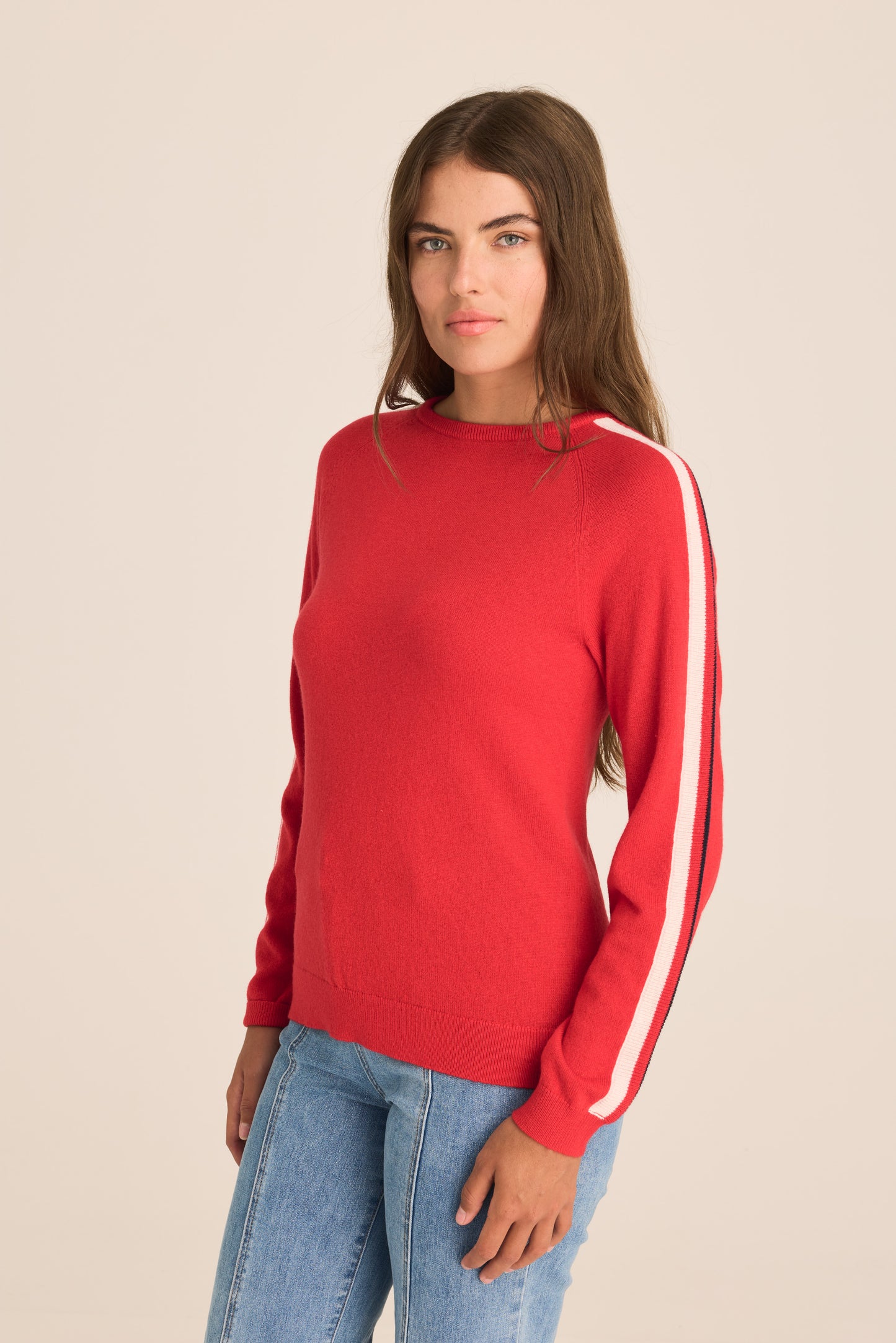 Cashmere & Wool French Racer Crewneck Sweater - RED