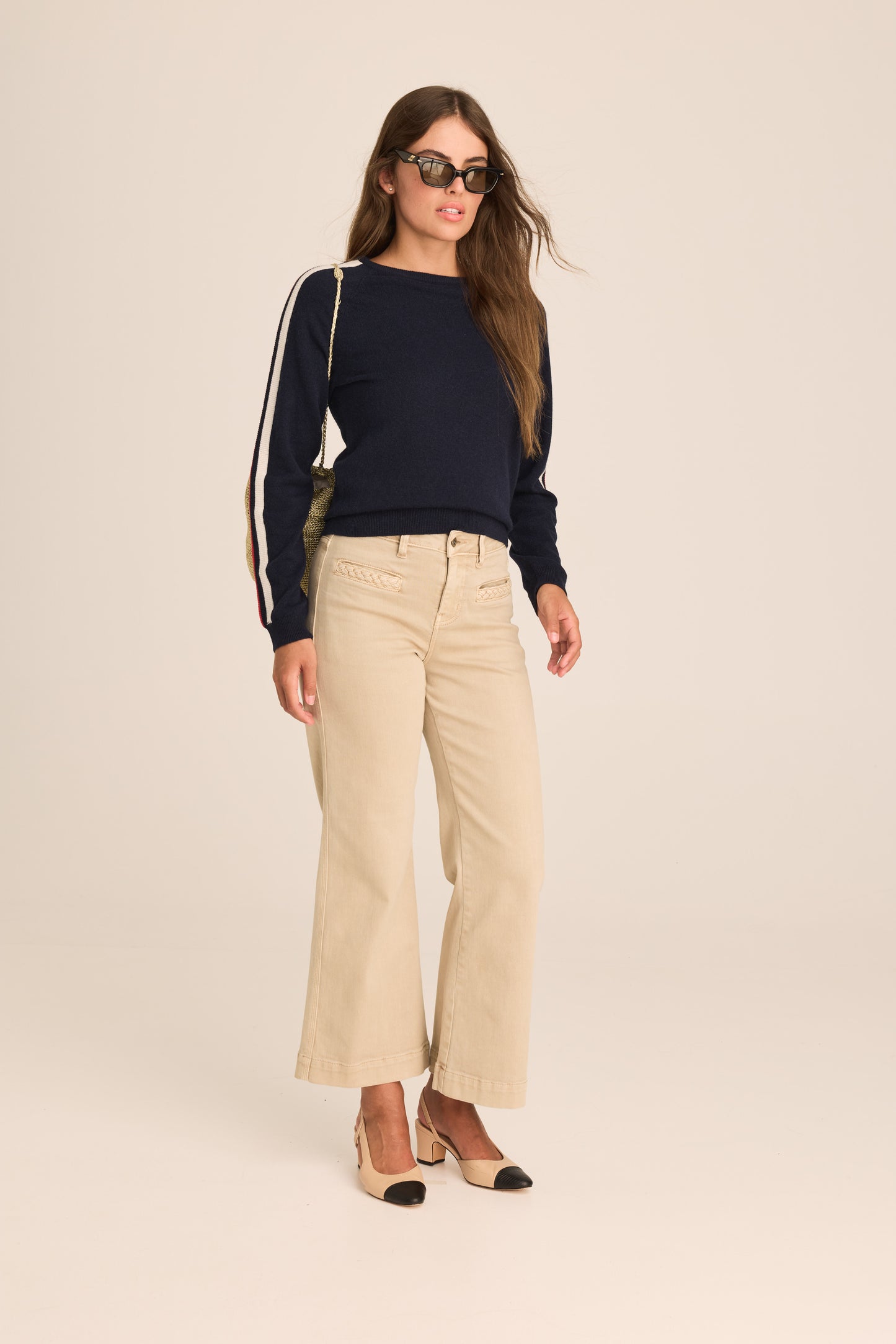 Cashmere & Wool French Racer Crewneck Sweater-Navy